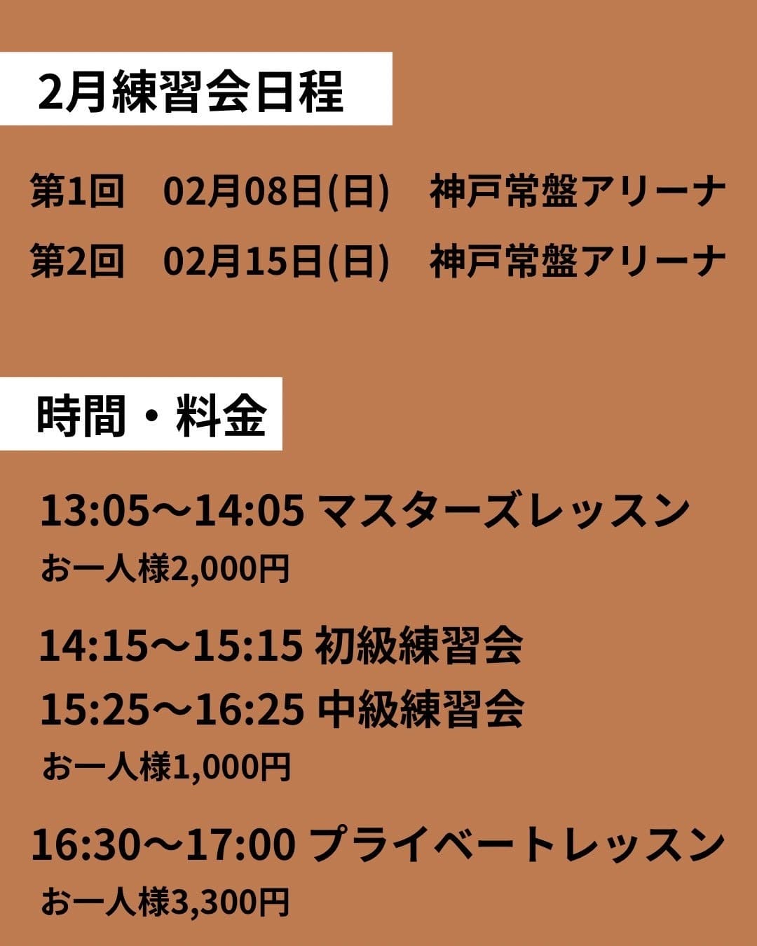 【2月練習会 日程|神戸常盤アリーナ開催】